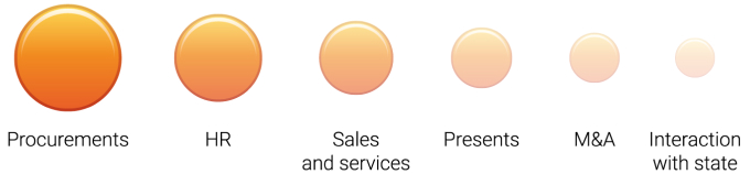 The Company employees are checked for knowledge of requirements of anti-corruption law and internal documents every year. In 2019, the Company’s Compliance Service conducted 6 internal investigations and 10 compliance checks on appeals received through the “hot line” and violations of requirements of internal regulatory documents and legislation at subsidiaries and affiliates. Following the inspections and investigations, activities on mitigating risks were carried out at subsidiaries and affiliates, as well as disciplinary actions were taken against executives and responsible officers. According to the 2019 results, 1 case of a corruption offense in the actions of the head of a subsidiary was reported across the group of companies, the results of an internal investigation were sent to the authorized body.
