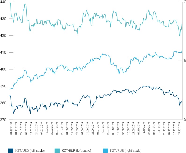 As of the date of this report, the official exchange rate of the National Bank of the Republic of Kazakhstan was 377,19 tenge per 1 US dollar compared to 381,18 tenge per 1 US dollar as of December 31, 2019 (31 December 2018: 384,20 tenge per 1 dollar USA). Thus, uncertainty regarding the tenge exchange rate and future actions of the National Bank and the Government remains, as well as the impact of these factors on the economy of the Republic of Kazakhstan. In September 2019, the international rating agency Standard & Poor’s affirmed Kazakhstan’s long-term credit ratings for liabilities in foreign and national currencies at the level of “BBB-” and Kazakhstan’s short-term ratings for obligations in foreign and national currencies at the level of “A-3”, and National scale rating – “kzAAA”.