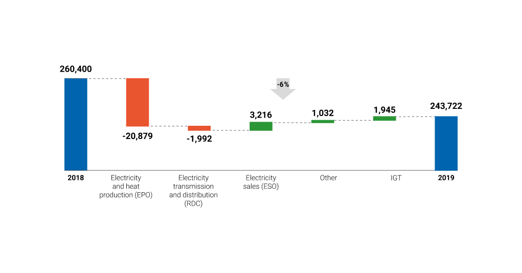 Revenues from sales of products and services provided across “Samruk-Energy” JSC Group of Companies in 2019 amounted to 243,722 mln. tenge: