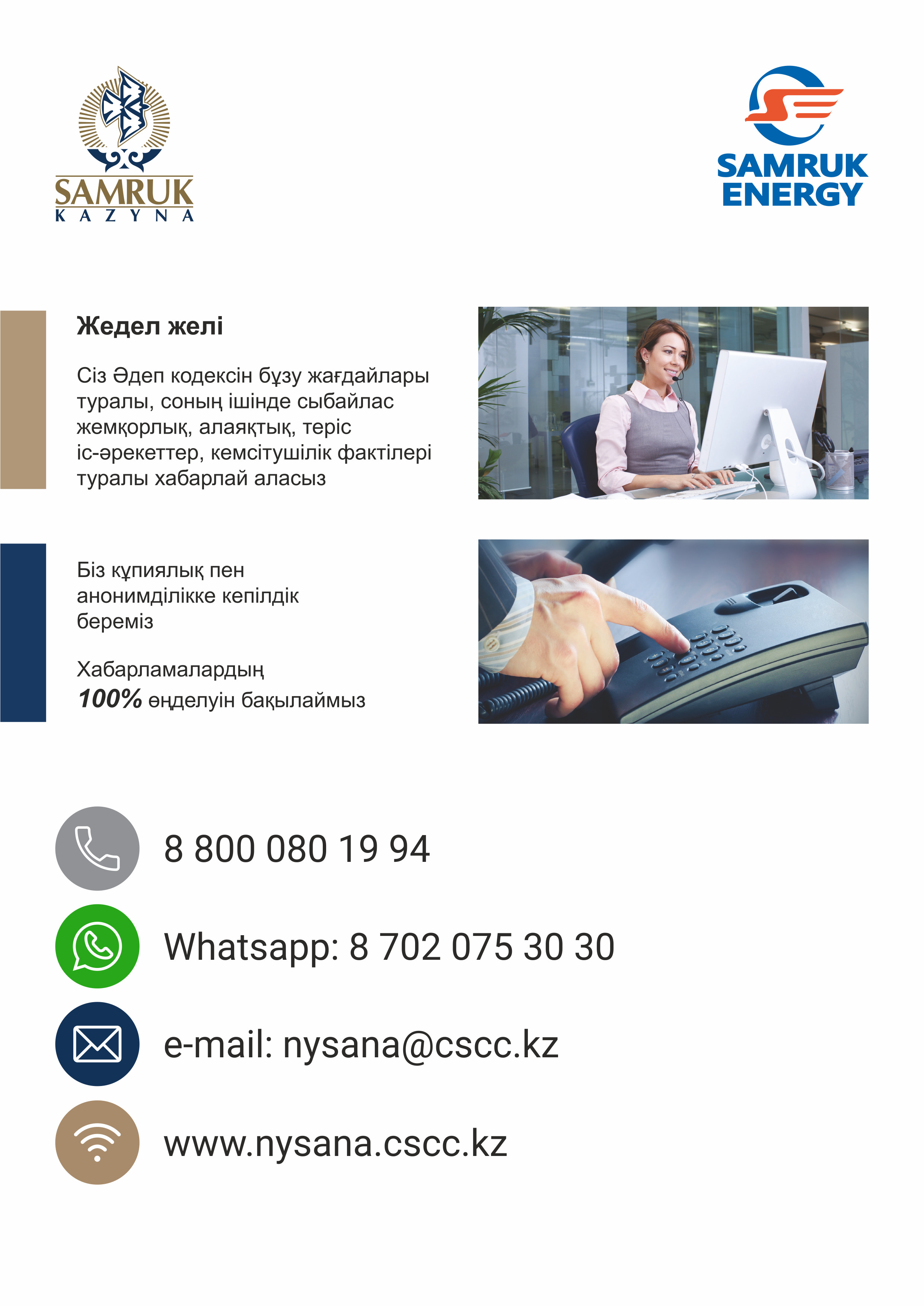 ✔ Компанияда Деллойт тәуелсіз компаниясы қызмет көрсететін бірыңғай «жедел желі» жұмыс істейді.