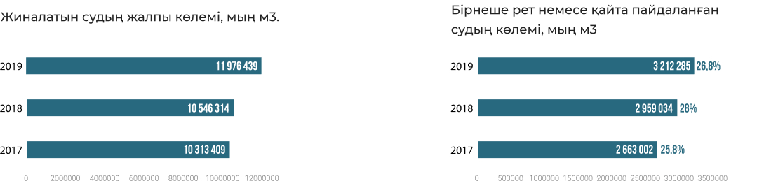 Есепті кезеңдегі бірнеше рет пайдаланылатын және қайта пайдаланылатын судың үлесі және жалпы көлемі