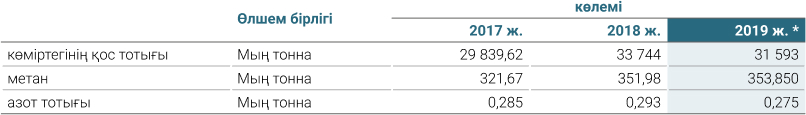 — көмір өндіру көлемінің төмендеуі және НОШ-ты жақсарту есебінен күл мен күл-қож қалдықтары түзілуінің нақты көрсеткішінің 2018 жылмен салыстырғанда 6%-ға төмендеуі.