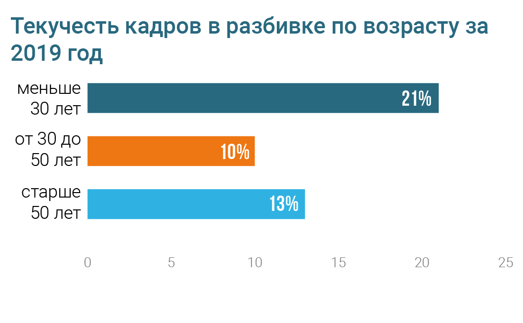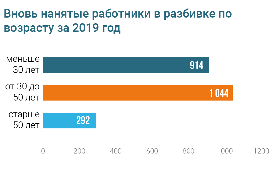 Средний возраст персонала в 2019 году составил 42 года. Средний стаж работы – 11 лет.